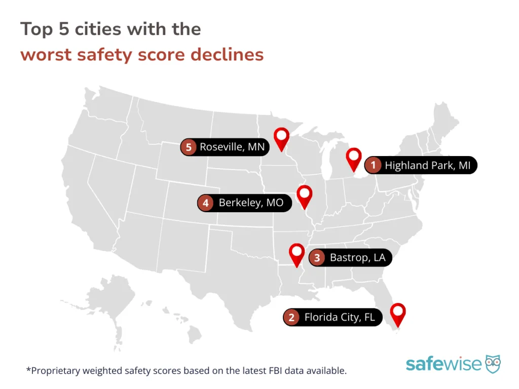 Each year, SafeWise experts dig into data to see which cities report the fewest crimes in every state.