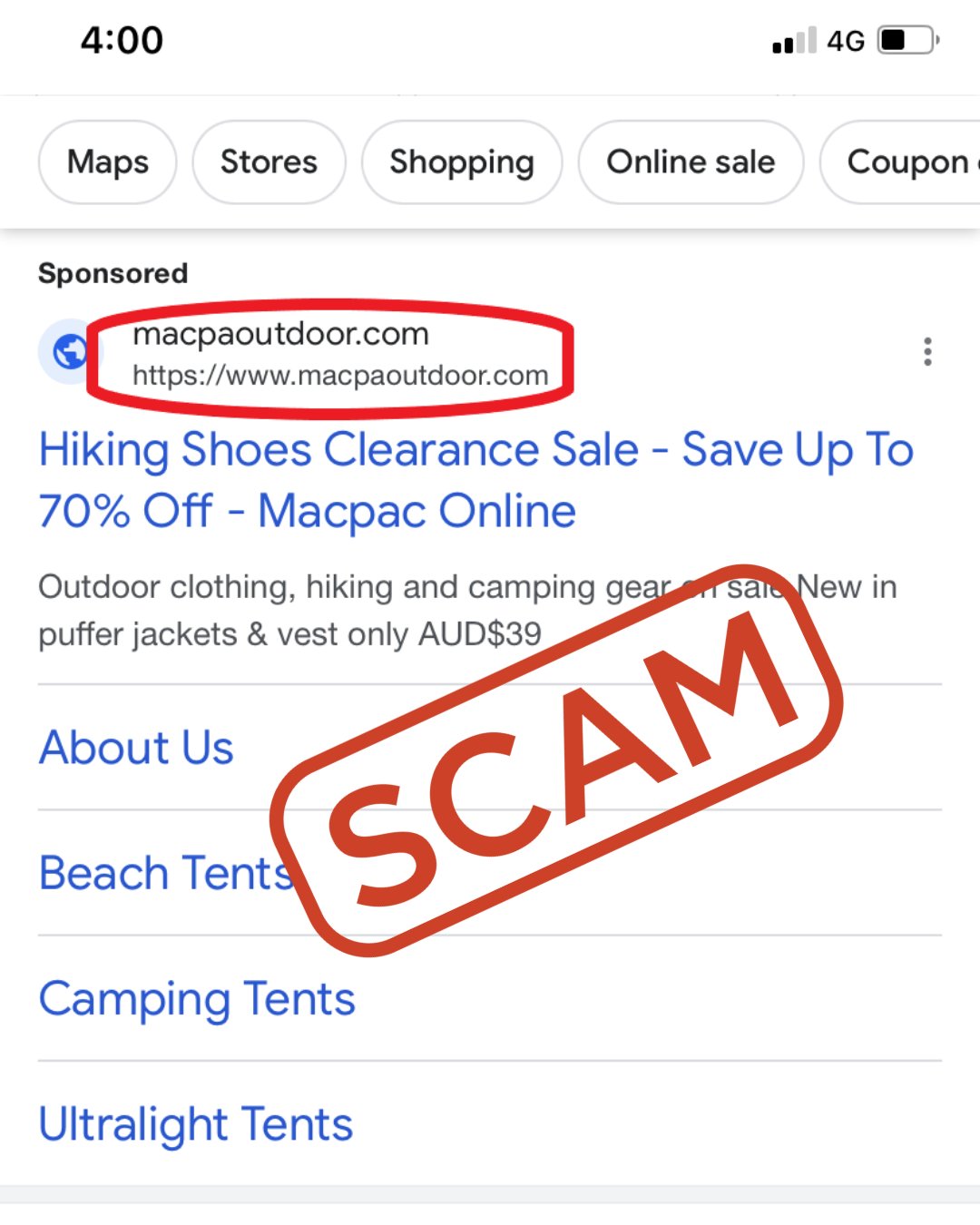 ACCC’s Scamwatch has released a warning over a scam targeting unsuspecting online shoppers. They’re urging Aussie consumers to be wary of scammers impersonating well-known brands. These brands are appearing in Google’s search results, sometimes lurking in the sponsored links at the top of the search results page if they’ve gone to the trouble to pay for an ad.