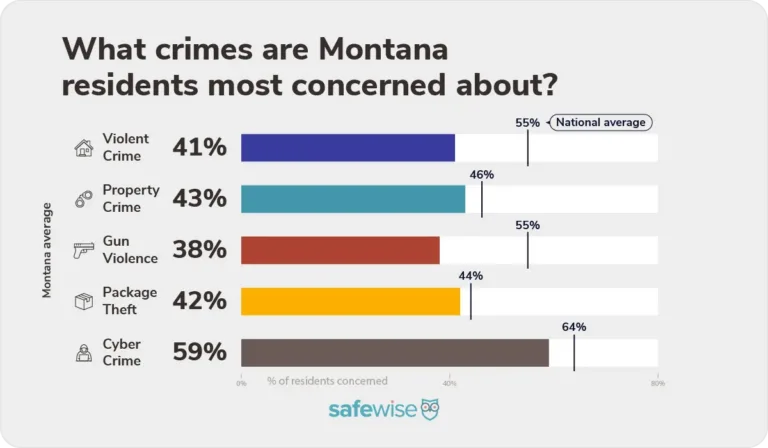Bar chart showing the percentage of Montana residents concerned about violent crime, property crime, gun violence, package theft, and cyber crime. Image: SafeWise