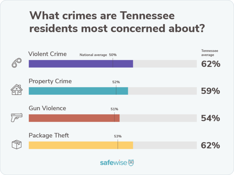 - 38% of Tennesseans say they feel safe in their state, which is below the US average of 45% and 17% lower than the previous survey.