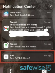 On the plus side, geofencing worked well. We received a push notification a few seconds after the BoT Talk exited the safe zone. And, in over a month of testing, we never received a false alert.