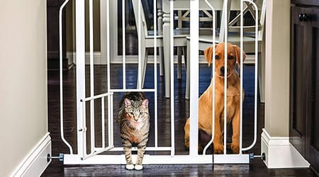 In addition to the walk-through door that makes it easy for adults to pass through, this gate also features a pet door that’s the perfect size for cats and smaller dogs.