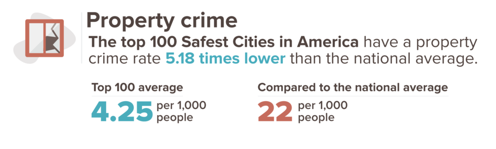 The cities that made the top 100 this year experienced an average of 4.25 property crimes per 1,000 residents. That’s a 40% decline from last year’s average of 7.11.