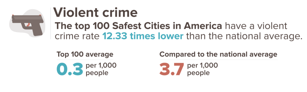 - There were only eight murders reported among the 100 safest cities—that’s just 1% of all violent crimes in these cities.