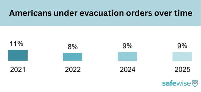Fortunately, higher levels of concern don't correlate to higher evacuation rates. In 2025, only 9% told us they'd been under an evacuation order, which is in line with the findings from our 2024 survey.