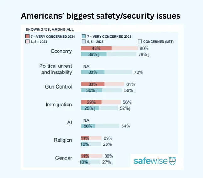The survey has been conducted annually for seven years, allowing SafeWise to analyze long-term trends, year-over-year shifts, and emerging safety concerns.*